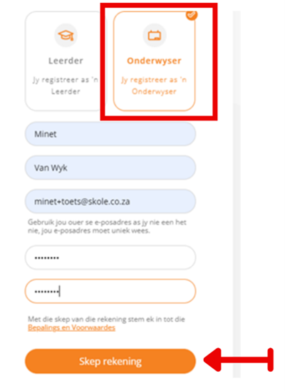 Stap 3: Klik op die “Onderwyser” opsie en vul die nodige inligting in.