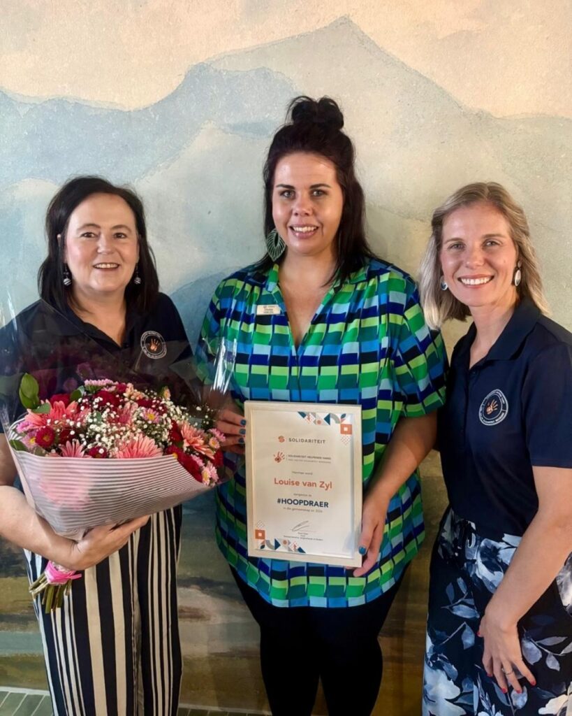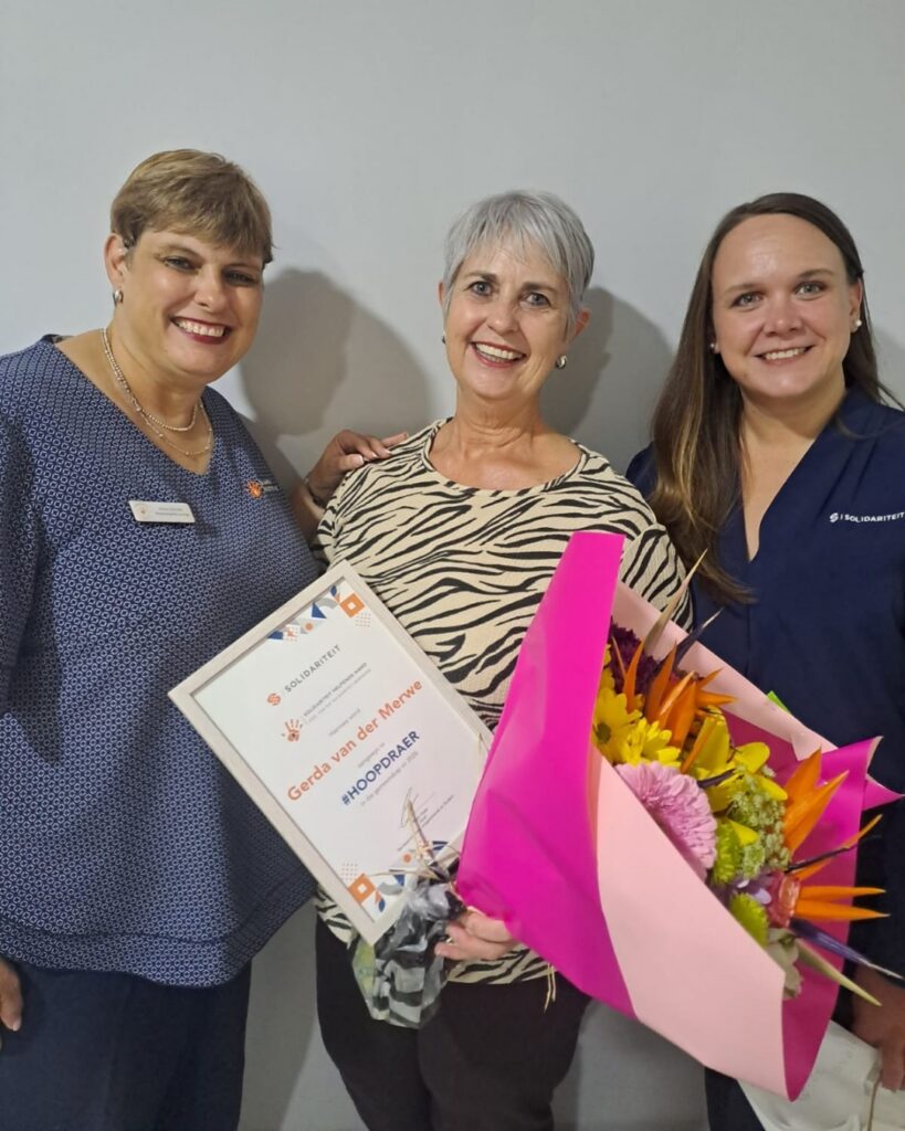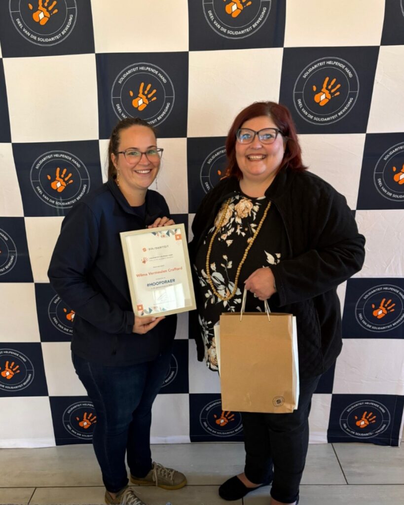 “Hulle toewyding is nie net werk nie, dit is diensbaarheid in aksie. Dit is vir ons by Solidariteit Helpende Hand ʼn besondere eer om hierdie maatskaplike werkers te vereer en erkenning te gee aan die diep menswaardigheid, deernis en volgehoue betrokkenheid waarmee hulle gemeenskappe versterk.”
