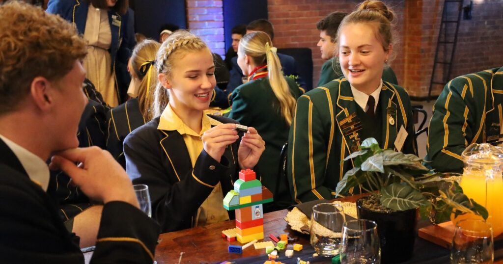 Die gasspreker, Susan O’Reilly, ʼn dosent in die Fakulteit Opvoedkunde by Akademia, het die verhoog betree met ʼn opwindende ysbreker vir die leerders. Elke tafel het ʼn hopie Lego-blokkies en ʼn opdrag gekry om iets te bou wat hulle idee van leierskap voorstel.