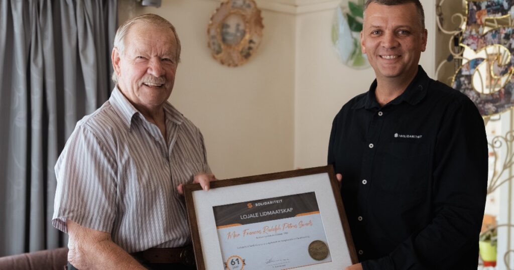 Dit is juis omdat hierdie eertydse Yskor-staalwerker as’t ware die mylpaal-man is dat sy woorde gewig dra. Solidariteit het pas ʼn erepenning aan Frans oorhandig om sy meer as 60 jaar se Solidariteit-lidmaatskap te vier.